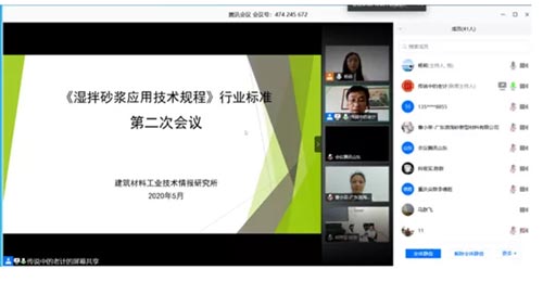 中國散協(xié)團體標(biāo)準(zhǔn)《濕拌砂漿應(yīng)用技術(shù)規(guī)程》第二次標(biāo)準(zhǔn)編制工作會議于2020年5月22日上午9:30-11:30以網(wǎng)絡(luò)會議的形式召開。中國散裝水泥推廣發(fā)展協(xié)會秘書長、建筑材料工業(yè)技術(shù)情報研究所混凝土發(fā)展中心主任孫繼成博士、中國散裝水泥推廣發(fā)展協(xié)會專家委員計海霞高工、建筑材料工業(yè)技術(shù)情報研究所標(biāo)準(zhǔn)編制工作組楊莉、中建西部建設(shè)北方有限公司技術(shù)中心經(jīng)理張凱峰、成都精準(zhǔn)混凝土有限公司經(jīng)理馬占民、山東弗爾曼新材料集團有限公司經(jīng)理肖維錄、主任薛俊書、廣東浪淘砂新型材料有限公司研發(fā)中心主任曹小榮、黃山精強建材股份有限公司副總經(jīng)理程楷、四川同舟化工有限公司技術(shù)片區(qū)負(fù)責(zé)人鄧奎、中信國安建工集團有限公司總工張學(xué)華、麗水市處州混凝土有限公司總經(jīng)理楊磊、實驗室主任金滿昌;株洲市中建新材料有限公司總經(jīng)理陳新、青島國基商砼有限公司郇建、昆明匯森混凝土有限公司杜顯茂等41名代表參加了會議。會議由建筑材料工業(yè)技術(shù)情報研究所楊莉主持。首先主編單位中國散裝水泥推廣發(fā)展協(xié)會秘書長、建筑材料工業(yè)技術(shù)情報研究所孫繼成博士介紹了標(biāo)準(zhǔn)編制要求以及編制工作進(jìn)度計劃。隨后,中國散裝水泥推廣發(fā)展協(xié)會專家委員、主編單位標(biāo)準(zhǔn)編制負(fù)責(zé)人計海霞高工就濕拌砂漿行業(yè)現(xiàn)狀、標(biāo)準(zhǔn)中創(chuàng)新點和關(guān)鍵點進(jìn)行介紹。標(biāo)準(zhǔn)編制組建筑材料工業(yè)技術(shù)情報研究所楊莉詳細(xì)介紹了標(biāo)準(zhǔn)文本及條款編制說明,并組織參會代就凝結(jié)時間、保塑時間、14拉伸粘結(jié)強度等關(guān)鍵技術(shù)參數(shù)進(jìn)行交流討論,廣泛征集參編單位意見。該會議的召開對標(biāo)準(zhǔn)編制工作起到了大的推進(jìn)作用。標(biāo)準(zhǔn)編制負(fù)責(zé)人計海霞高工標(biāo)準(zhǔn)編制組工程師楊莉